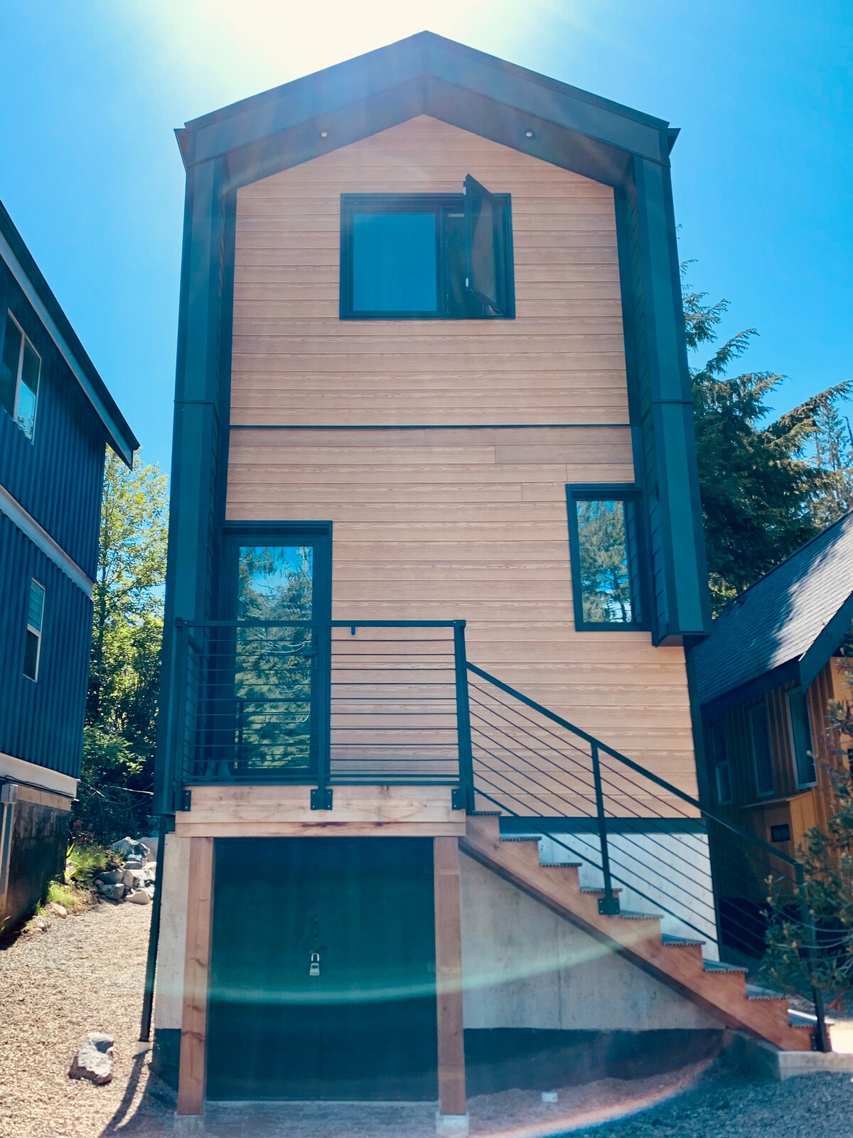 Enclavat enmig d'una antiga selva tropical, amb vistes a l'oceà Pacífic. Aquestes casetes contemporànies de tres nivells ofereixen una combinació única d'una escapada a peu de mar i un refugi serè a la selva tropical. Cada planta d'aquestes casetes disposa d'una terrassa privada, dos dormitoris, dos banys, una cuina completa, una llar de foc, una sala d'estar i un menjador. Amb accés directe a Terrace Beach i The Wild Pacific Trail Lighthouse Loop. * S'admeten animals de companyia: 20 $ per nit, per animal de companyia. Màxim 2 animals de companyia. S'han cobrat a través de les cabanes.