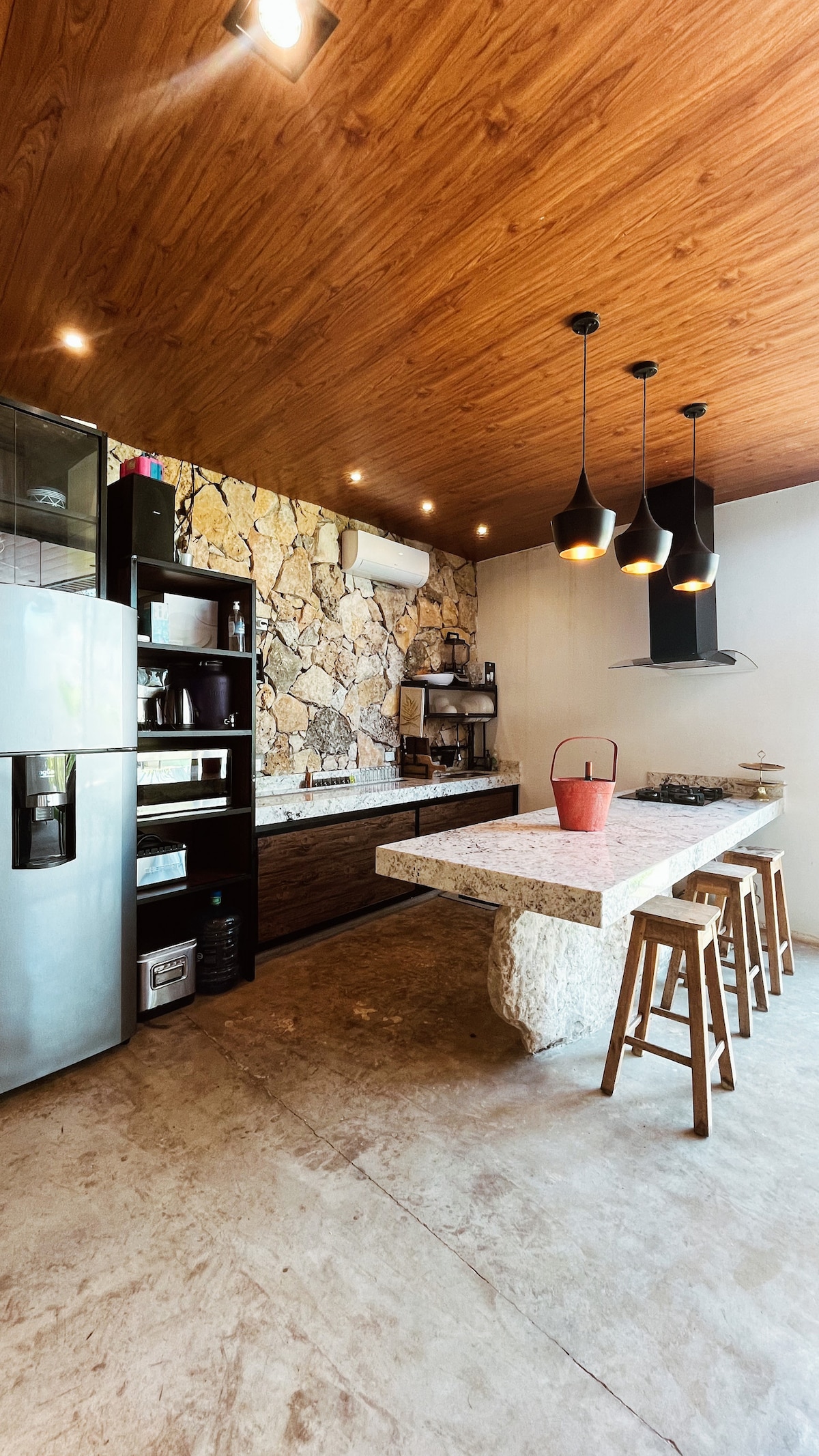 Relaxa't en aquest espai únic i tranquil amb ganes de portar l'encant de Miconos a Mèrida, Yucatán. Gaudeix de dormir en una hamaca escoltant el so de la cascada, prepara un àpat a l'aire lliure a la barbacoa i explora els encantadors restaurants i cafeteries que hi ha a prop. Amb tecnologia intel·ligent, internet ràpid i ubicació ideal, no hi ha dubte que t'enamoraràs d'aquesta petita part de Grècia des del moment en què arribes!
