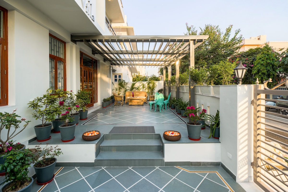 L'allotjament Boutique té una arquitectura molt senzilla i moderna amb una decoració preciosa, a la vegada que elegant i amb classe. Els hostes poden gaudir d'un ambient tranquil i una estada còmoda amb tots els elements bàsics per gaudir d'un toc personal com el d'una llar entre les zones turístiques d'Udaipur. Un lloc on viureu l'hospitalitat rajasthana i l'encant d'Udaipur - ciutat del llac.