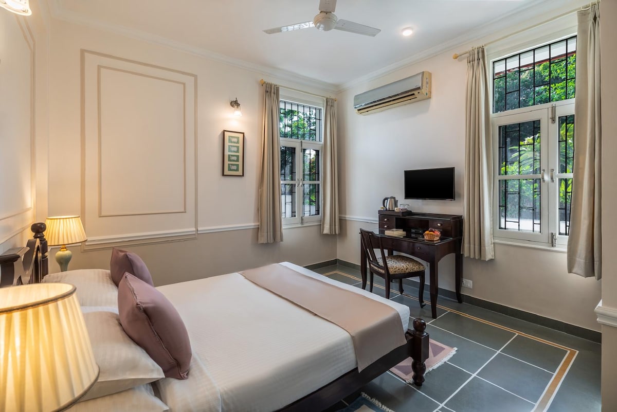 ★ Esmorzar, 1 habitació amb balcó de luxe ( 1r pis) Bany ★ privat de primera qualitat ★ Minibar Patrimoni ★ arquitectònic i equipament i serveis moderns ★ Piscina compartida ➤ Allotgem hostes estrangers i indis durant tot l'any. Ubicació ➤ tranquil·la: A ★ 15 minuts del Palau de la ciutat d'Udaipur ( 5,5 km), llacs i mercats. Servei ★ de taxi Itinerari ★ personalitzat per explorar joies/cultura amagades Opció de cuina ★ local ➤ Adornat amb habitacions ben dissenyades amb vistes a la piscina coberta, el Majestic Monsoon Palace/ Aravalli Hills!