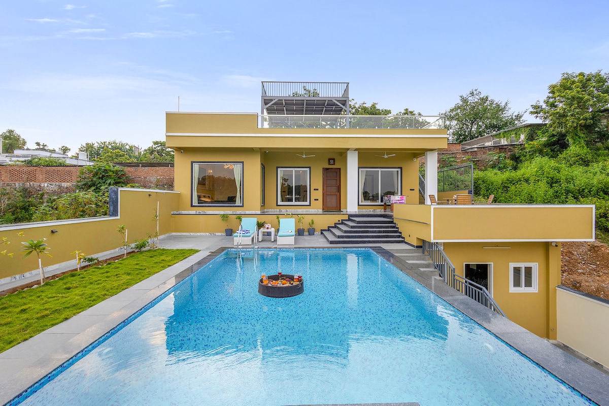 6 BHK Luxury Villa w/Pool+Lawn+View near Udaipur