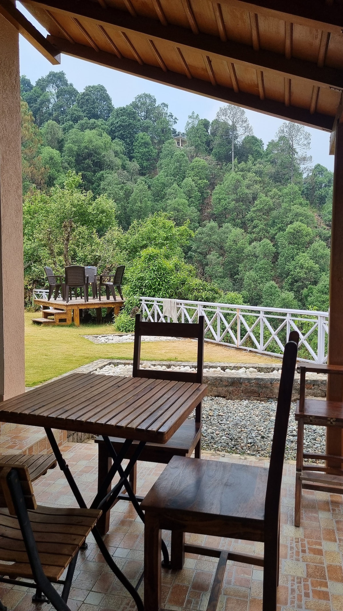 Situat al cor de les muntanyes, "L'estada de somni" ofereix una vista impressionant de la vall dels voltants que s'estén tan lluny com pot veure la vista. Mentre entres al porxo, et transportes immediatament a un món de tranquil·litat i bellesa natural. L'aire fresc de la muntanya omple els pulmons, mentre que el so del cant dels ocells i les fulles crujents proporciona la banda sonora perfecta per a la teva estada. Estem a una hora de Nainital i a 20 minuts de Bhimtal.