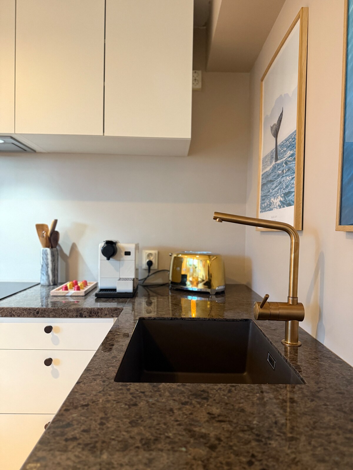 Pis en una zona residencial tranquil·la a prop del transport públic i botiga amb pati. Cuina, sala d'estar amb sofà llit, menjador, dormitori gran amb llit doble, passadís, bany i lavabo privat. Microones amb televisor intel·ligent. Bona emmagatzematge i calefacció al terra. Rentadora i rentaplats. A poca distància de les zones públiques de senderisme a la platja.