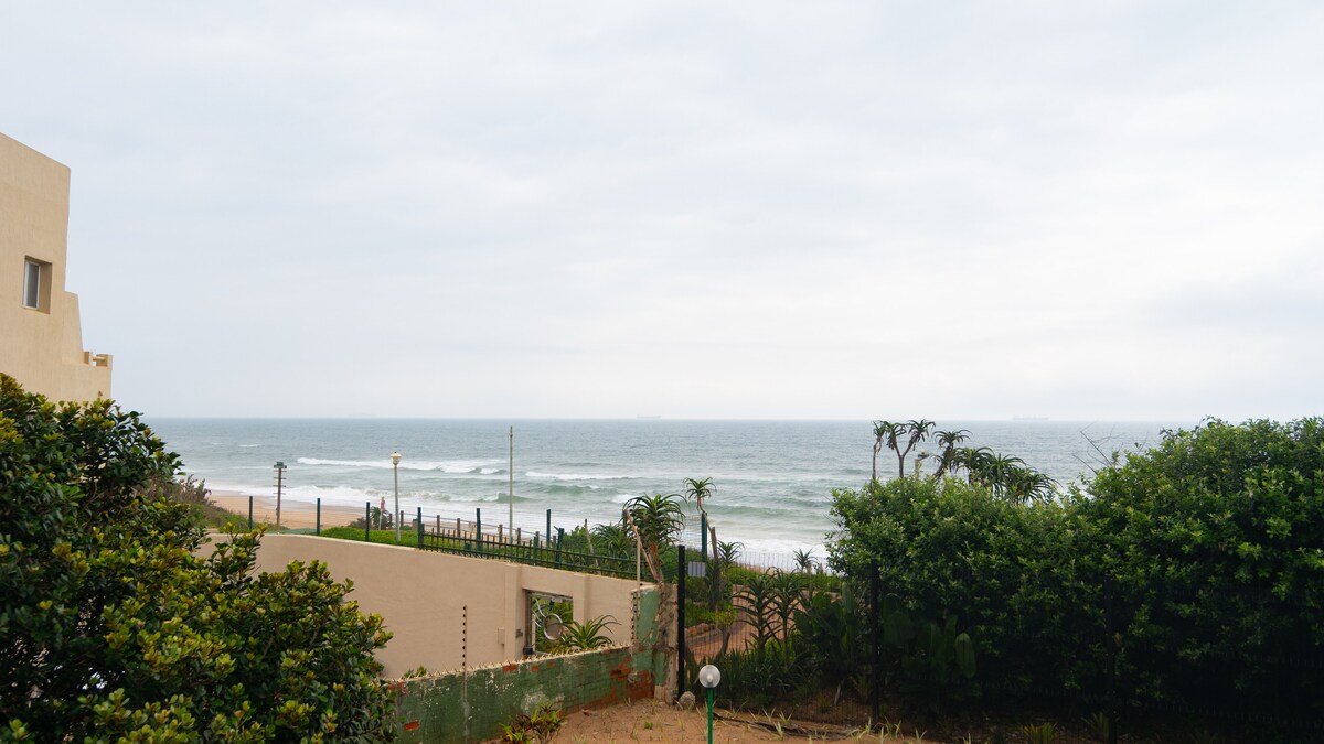 Your own bit of tranquil paradise. Relax on the large deck overlooking the Indian Ocean right in front of you where whales & dolphins play. This air-conditioned 1 bedroom cottage boasts private ocean views throughout and a short 80m pathway to the beach. A lounge with a 50” flat screen and full DSTV, a fully equipped kitchen with a fridge/freezer. Free use of Fibre High speed Wi-Fi. Inverter electricity backup Drive-in access with safe private parking. in a good area along Marine Drive.
