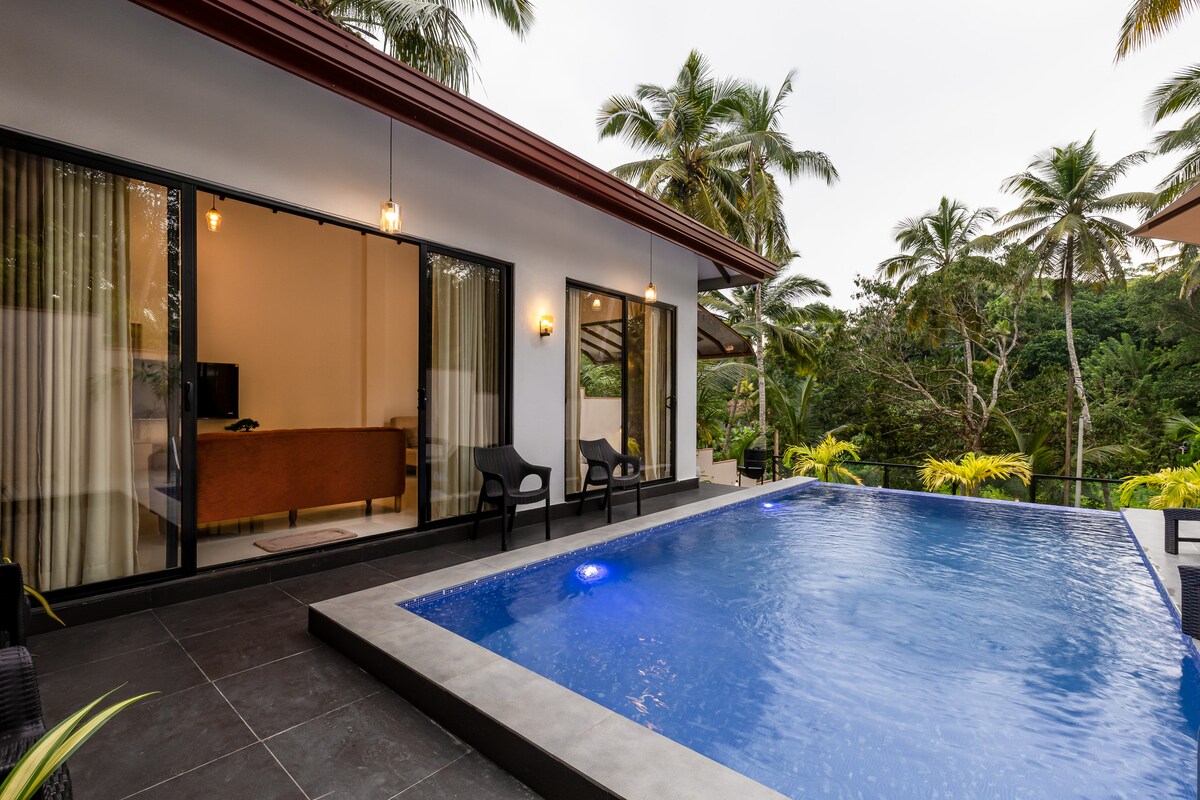 Aquesta vil·la moderna, luxosa, còmoda i espaiosa, dissenyada per un estudiant del famós arquitecte Geoffrey Bawa, es troba en un exuberant jardí tropical aïllat amb piscina privada (25 peus x 12 peus) en una zona residencial tranquil·la al poble de Unawatuna. La vil·la ha estat dissenyada tenint en compte en aquest clima calorós. Els sostres alts i moltes portes franceses de totes les habitacions garanteixen un flux d'aire de refrigeració constant a tota la vil·la. La vil·la està aprovada per la SLTDA.