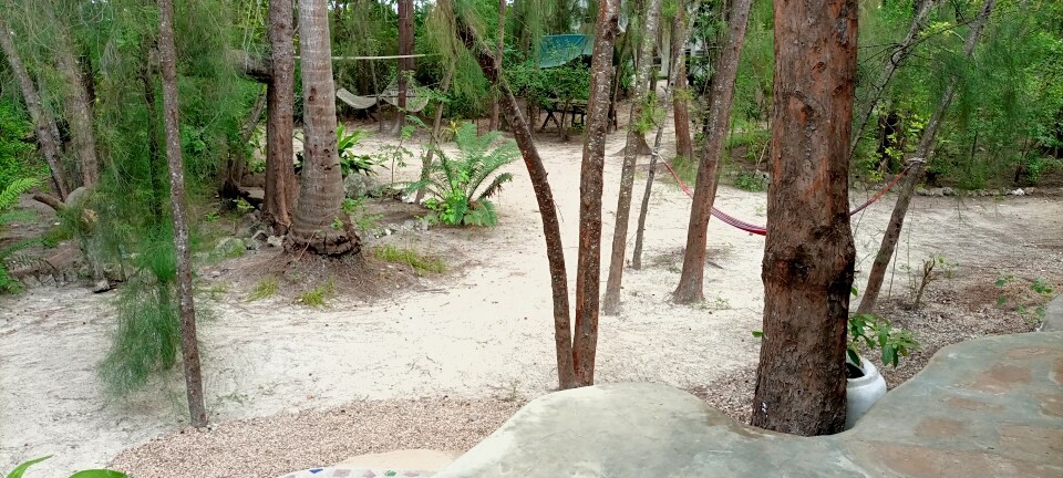 Escape to our tranquil guesthouse nestled in Zanzibar's bush. Two spacious and bright rooms offer private bathrooms, balcony/ patio and entrance. The rooms boast a large-sized bed for ultimate comfort. Share our outdoor kitchen, garden and covered sitting area. Our gym is located nearby (5 walking minutes); yoga, dance, boxing and fitness classes are available. The beautiful beach with restaurants is a 10-minute walk away. Experience serenity and convenience in paradise.