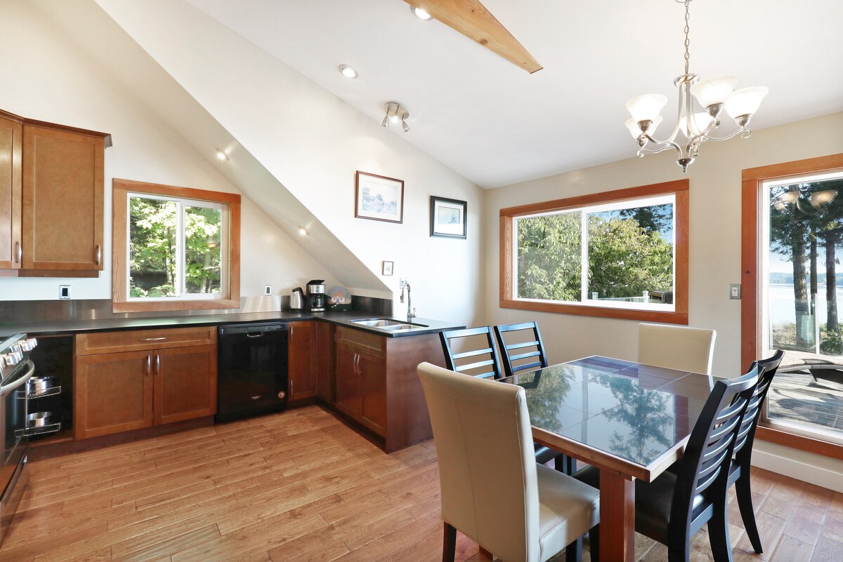 Casa rural de 2 dormitoris amb sauna, a primera línia de mar, lluminosa i privada, amb unes vistes impressionants de l'estret de Geòrgia. Aquest encantador allotjament a primera línia de mar disposa d'una cuina completa amb electrodomèstics moderns, safareig i una dutxa a ras de terra amb pedres precioses. L'acollidora sala d'estar està dissenyada per gaudir de vistes panoràmiques de l'oceà i la muntanya, amb els sons de la natura creant l'espai perfecte per relaxar-te i deixar-te anar.