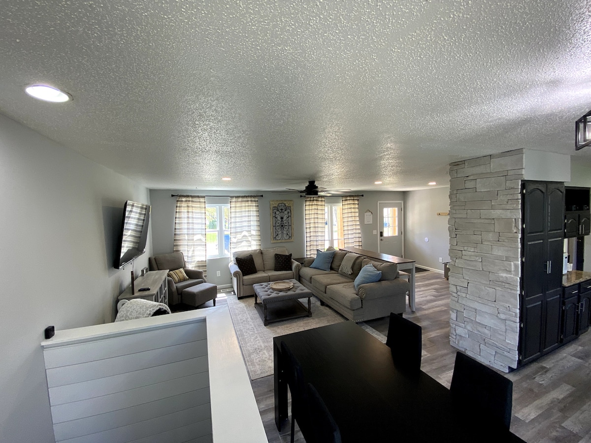 Et donem la benvinguda al nostre allotjament de 4 dormitoris a Dogtown, ideal per a reunions familiars. Gaudeix de la cuina/saló/menjador obert amb grans finestres, un llum modern i obres d'art amb estil. Cuina amb olles i paelles de qualitat i un joc de ganivets Zwilling, i prepara un cafè amb la cafetera Breville Barista Express. Capacitat per a 8 persones (fins a 10 amb matalàs inflable): matalàs «king size» Nectar + 3 matalassos híbrids «queen size» (Casper/Sealy). Dutxa a ras de terra al bany privat. Wifi ràpid, televisor LG 4K de 77 polzades. Garatge per a 2 cotxes + gran entrada + carregador de 220V per a vehicles elèctrics. Zoo a 6 minuts, 7 WashU, 9 SLU; ràpid I-64/I-44/I-170.