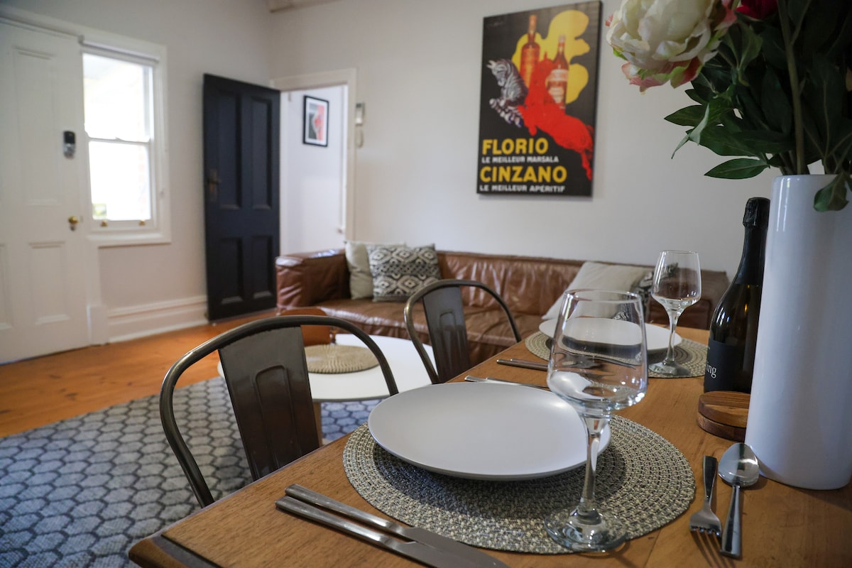 Preciosa vil·la ecològica Queen Anne en un carrer tranquil de la vibrant cafeteria i botiga de King William Rd, a 10 minuts del centre d'Adelaide. El nostre allotjament històric té una brillant cuina/saló d'influència japonesa que s'obre a un fabulós jardí a l'ombra amb un tendal d'arbres d'arce japonès madurs. Equipat amb antiguitats i mobles japonesos i decorat amb art original i cartells de teatre. Perfecte per a famílies, amics que viatgen junts, visitants de negocis.
