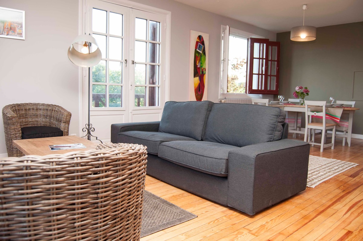 Pis privat independent a la planta baixa amb banyera d'hidromassatge privada oberta durant tot l'any . Disposa d'una sala d'estar amb sofà llit per a 2 persones i una suite principal amb bany. A prop de les platges, a només 2 km de Fort de Socoa, t'ofereix totes les comoditats. Les bicicletes són benvingudes amb carril bici a prop. Entrada a l'autopista i centre comercial a 5 minuts. Estació de càrrega de 11 kW
