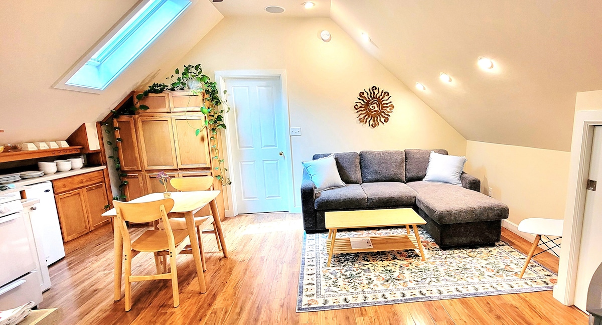 Aquest apartament d'estil industrial de 2 dormitoris i 1 bany pot allotjar fins a 4 hostes i es troba a 5 minuts en cotxe del centre de Champaign i de la Universitat d'Illinois, cosa que el converteix en una ubicació ideal per a la teva propera visita a Champaign. The Edge és una suite del primer pis en una casa d'estil victorià de 100 anys d'antiguitat que s'ha convertit en un dúplex. Aquest pis de la planta baixa disposa d'una zona de cuina àmplia i oberta, així com una suite amb dormitori king, televisor intel·ligent de 55"i llits Murphy.