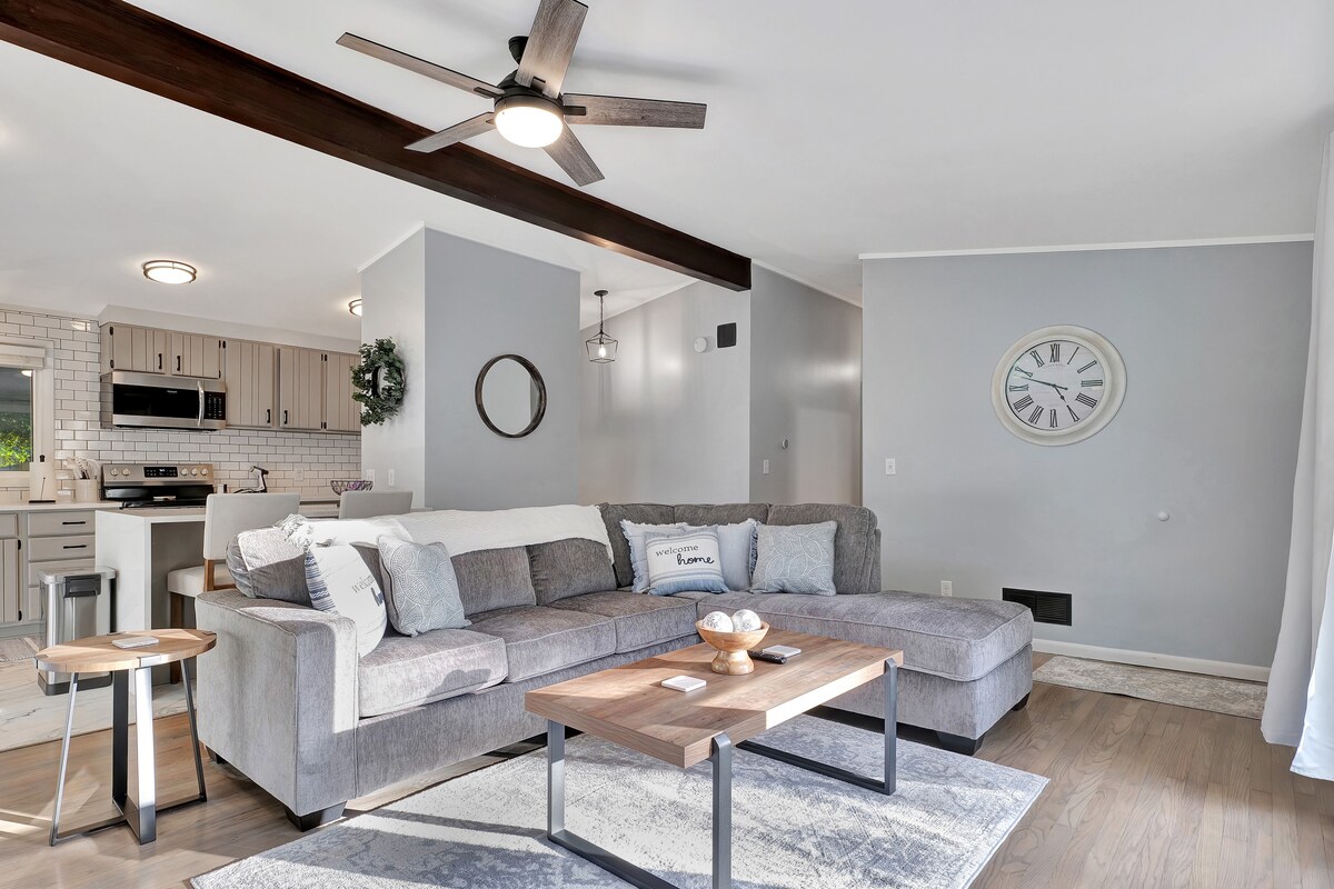 Allotja't en un dels Airbnbs més ben valorats de Champaign, situat en un barri tranquil a prop de la Universitat d'Illinois a Urbana-Champaign! Aquest allotjament de 2 dormitoris, molt ben remodelat, disposa d'una cuina moderna amb electrodomèstics d'acer inoxidable i taulells de granit. La sala d'estar ofereix un sofà seccional i un televisor intel·ligent. Tots dos dormitoris inclouen matalassos de felp de mida king-size per a un somni reparador. Un bany d'estil spa, un garatge per a 2 cotxes i un pati tranquil completen l'estada. Ideal per a famílies, parelles, professionals que viatgen i estades llargues!