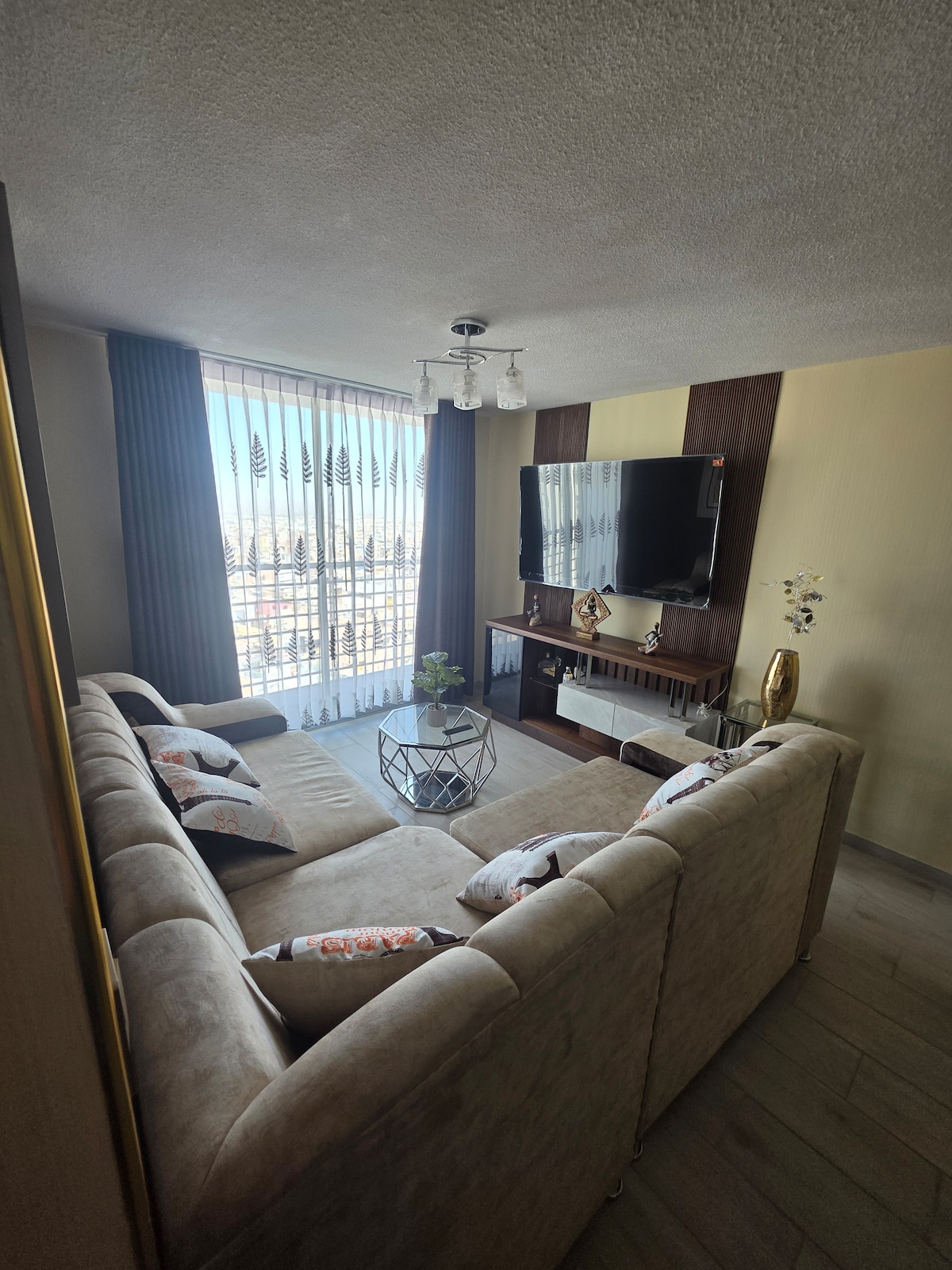 Situat a 10 minuts de la tanca d'Arequipa, el nostre acollidor apartament és ideal per a famílies i grups que busquen comoditat i estil. 🏡 2 dormitoris i 2 banys per a la teva comoditat 📺 Televisor a la sala d'estar amb accés a Win TV, Disney+, Netflix i YouTube Premium (sense publicitat) 🍳 Cuina equipada per a les teves necessitats culinàries 🖥️ Espai de treball per a les persones que necessiten estar connectades 🏢 Edifici amb 3 ascensors ✅ Entrenador inclòs Reserva ara i gaudeix d'una bona experiència.