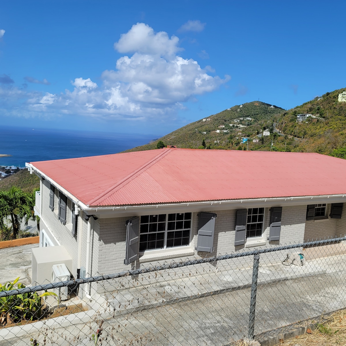 Ocean Blue Cottage located in Upper Carolina, 400' above sea level, overlooking Coral Bay harbor, Bordeaux Mt, Carolina valley and a peek of the Caribbean Sea. 23 steps down from the road, it has a bedroom 9'x12', dining/kitchen area 6'x10', bathroom 3'x10', private outdoor shower 4'x5', deck 8'x4' with grill, furniture, umbrella. Pricing is $150 night. There’s also an $90 cleaning fee per reservation. 5 min drive to restaurants, 10 min to beaches.