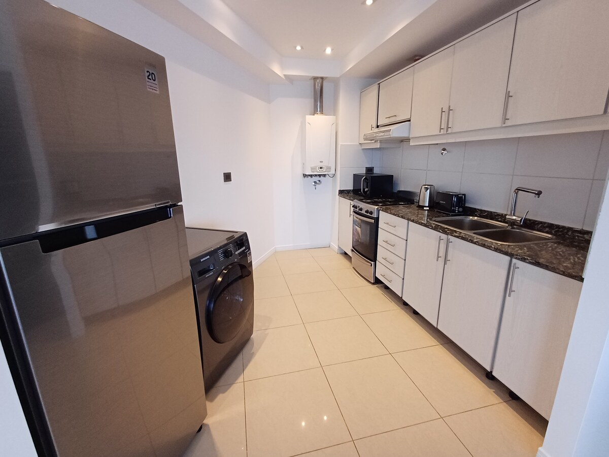 Excel·lent ubicació en un edifici de categoria ( Amundsen) amb 2 ascensors. A una cuadra de l'avinguda principal San Martín, a prop de supermercats, restaurants, centres mèdics, a 10 minuts de l'aeroport en cotxe. L'apartament té unes vistes excel·lents del canal Beagle. Sala d'estar integrada a la cuina, dormitori principal amb vestidor, bany complet. matalassos, llençols i tovalloles de qualitat hotelera. Equipat per dormir fins a 5 persones. Televisor intel·ligent, TV 32. Per gaudir-ne al màxim!