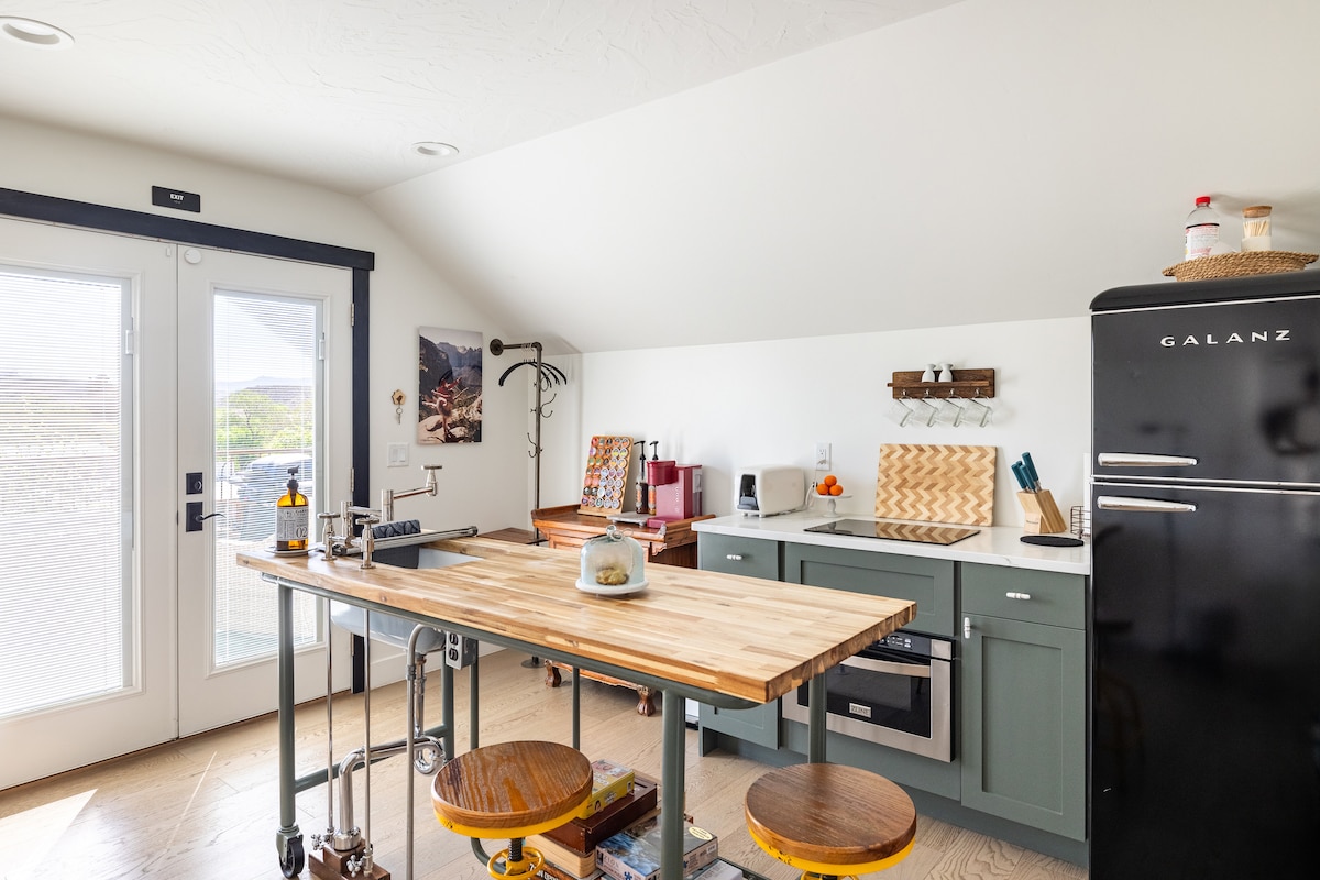 Situat just a sobre de l'emblemàtic Chick 's Café, aquest preciós apartament loft de dues habitacions es troba al centre històric de Heber City, Utah. El Loft és perfecte per a una escapada familiar o un cap de setmana d'esquí. Aquest loft disposa d'una planta oberta moderna al segon nivell d'un edifici històric amb totes les comoditats de la llar. Vine i gaudeix de llençols blancs, un televisor de pantalla gran per a la nit de pel·lícula i una cuina gurmet plena d'electrodomèstics d'acer inoxidable i taulells de granit.