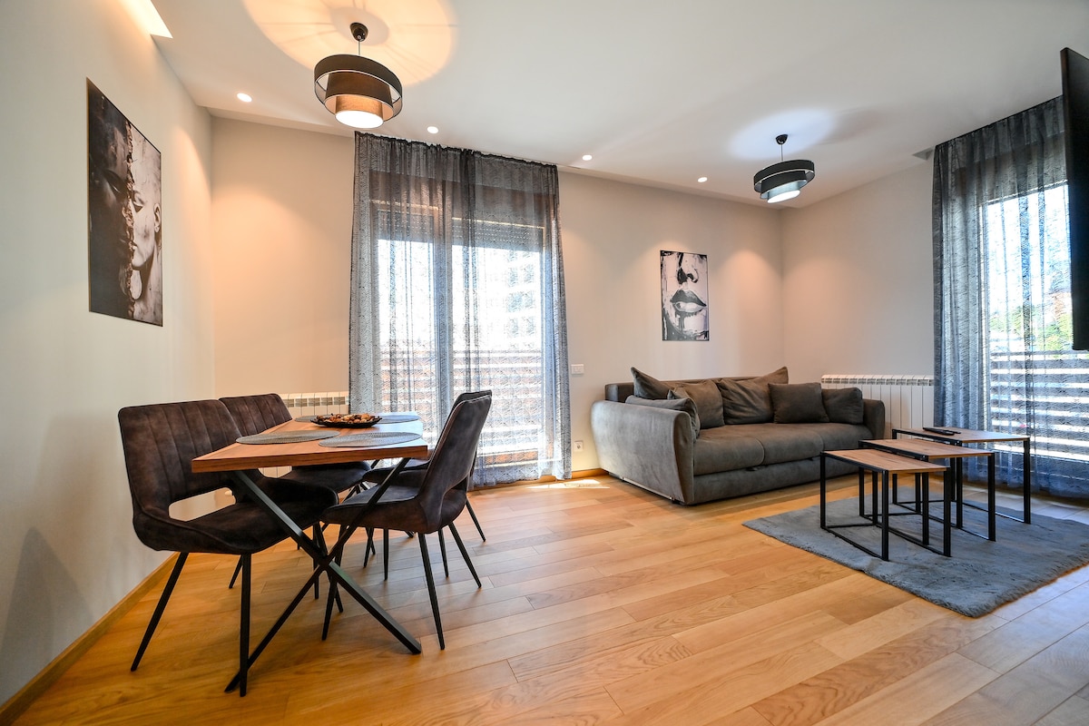 Pis modern i luxós al cor de Zlatibor! Situat en un complex turístic tranquil a pocs minuts a peu del centre, Gold Gondola, llac i pista d'esquí. Ubicació perfecta per a unes vacances en qualsevol època de l'any. ◆Aparcament segur al garatge (gratuït) ◆Vista de Tornik ◆ Televisor intel·ligent, aire condicionat, rentadora + assecadora, rentaplats, cafetera ◆ Wellness & Spa dins del complex (càrrec addicional) Luxe sense multituds: l'opció perfecta per relaxar-te. Zlatibor: tot al teu abast!