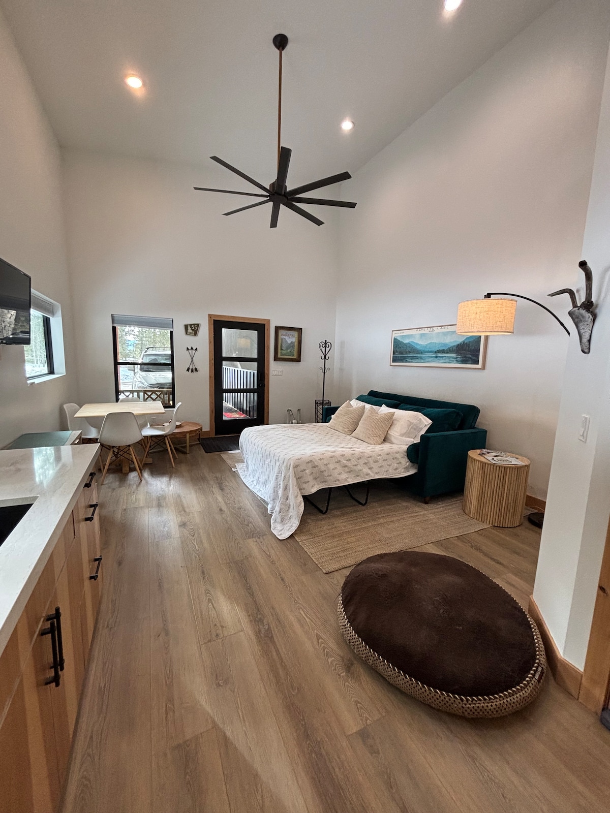 Aquest nou espai per a hostes de 600 peus quadrats amb un dormitori i amb la seva pròpia entrada privada és perfecte per a dues persones, però prou espaiós per a quatre. El segon llit és un matalàs plegable, «veure fotos». Estem a 5 minuts de Tamarack i a un passeig ràpid del llac Cascade, on pots gaudir de piragüisme, canotatge, navegació o surf de rem. Pots llogar qualsevol d'aquests a la marina de Tamarack. Tamarack és un complex turístic de quatre estacions que ofereix esquí, ciclisme de muntanya, golf, serveis d'spa i restaurants.