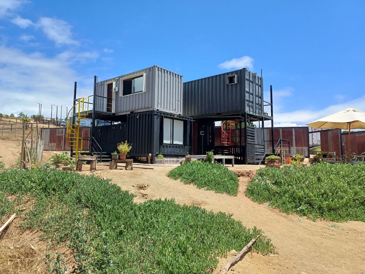 Casa Container Algarrobo és un lloc per gaudir en parella, en família o amb un grup d'amics en una parcel·la tranquil·la, envoltada de natura, amb una relaxant banyera d'hidromassatge i molt d'espai per gaudir. El terreny té 5.700 m2 per aprofitar amb el teu grup, passar temps a l'aire lliure i gaudir de la natura. Situat a 10 minuts en vehicle de la platja d'Algarrobo, on pots trobar una gran varietat de serveis turístics i gastronòmics.