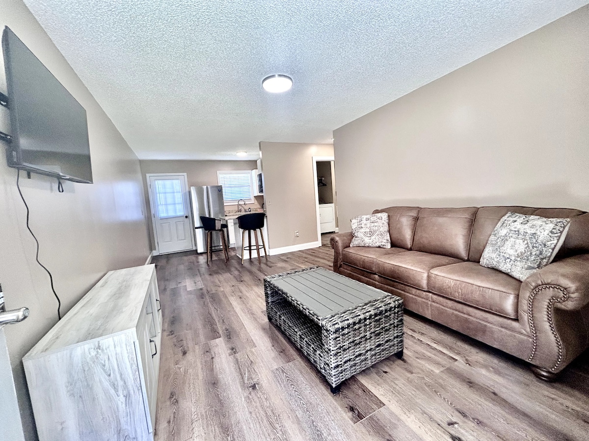 Kick back and relax in this calm, stylish space. Three bedrooms one and a half baths. Smart tv in all the bedrooms and living room for streaming. Wi-Fi 1 gig fiberoptic. Nice kitchen and laundry room. There is a large back deck with outdoor eating area and a hot tub. There is a fire pit out back to chill and star gaze. This location is less than 4 miles from Rock Island State Park.