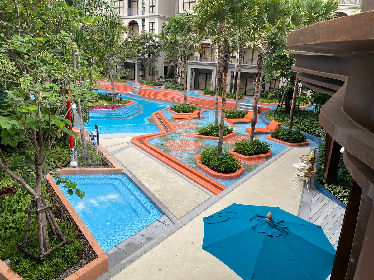A pocs minuts de la platja de Hua Hin. El nostre espaiós apartament de 98 metres quadrats, situat a la segona planta, és un dels tipus d'unitats més grans de tota la urbanització. Amb 2 dormitoris, 2 banys i una cuina totalment equipada, aquest apartament ofereix comoditat i comoditat. El balcó orientat a l'est és ideal per gaudir del cafè del matí o d'una barbacoa privada a la nit. Amb piscines d'estil complex hoteler, un centre de fitness i seguretat les 24 hores, és el refugi perfecte per a famílies, parelles o viatgers sols.