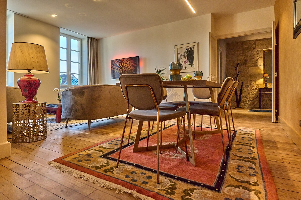 Pis classificat amb 4 estrelles al centre de la ciutat, a prop de la Catedral i del Palau de la Justícia, en una residència privada "Les Suites du Palais" amb aparcament, aquest gran apartament tranquil i lluminós serà el lloc perfecte per a la teva estada professional, amb la família, els amics o els companys! Amable i totalment equipat, aquest allotjament exclusiu de 115 m2 ha estat moblat amb l'esperit d'un aparthotel privat. La seva ubicació és ideal per arribar a qualsevol lloc de Nevers i ràpidament.