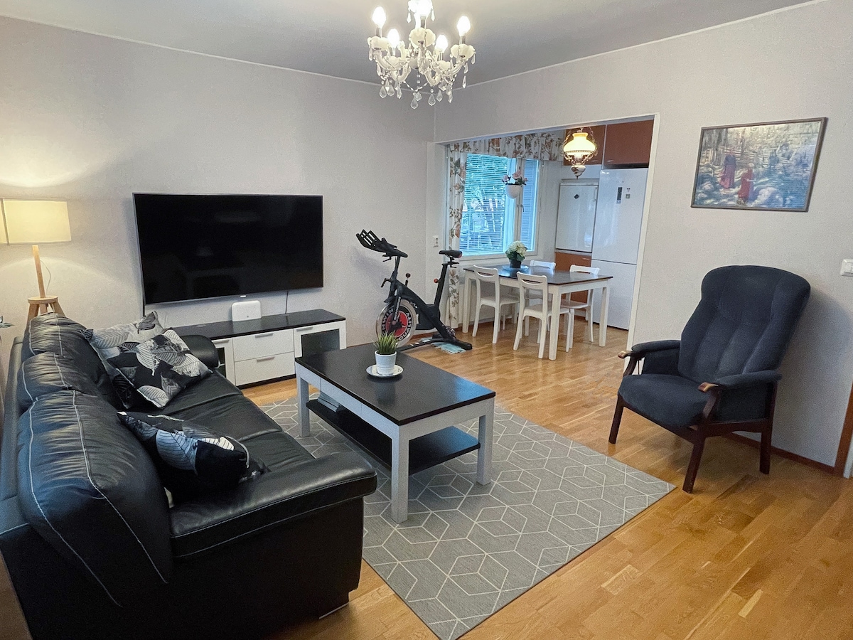 Autònom = estada més barata a Kuopio✨ Triangle final amb dos dormitoris grans, un balcó al sol del matí i una ubicació cèntrica, però tranquil·la: a 1,3 km del mercat i de la universitat, a 950 m de l'hospital. Aparcament amb endoll al pati. Wifi disponible. NOTA: l'allotjament és d'autoservei, és a dir, has de portar els teus llençols i tovalloles i deixar l'apartament tan net com l'has trobat. També pots demanar-nos llençols (18,50 €/joc) i el servei de neteja (65 €). NO POTS dormir sense llençols