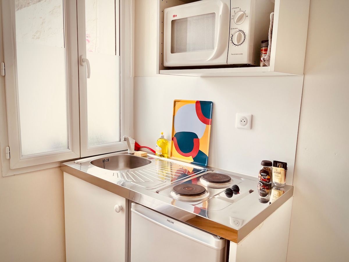 Estudi independent de 30 m2 Accés independent Caixa de claus codificada Aparcament gratuït davant de l'entrada Cuina equipada amb nevera i congelador petit Cafetera i càpsula incloses Ampolla d'aigua de 1,5 litres gratuïta Microones Torradora Aire condicionat mòbil de 7000 btu Destinat per a 4 persones +1 nadó Auchan a 5 minuts Carrefour 10mn Aéroville Mall 5 min o 3 km Internet de fibra il·limitat para-sol Cadira per a nadons