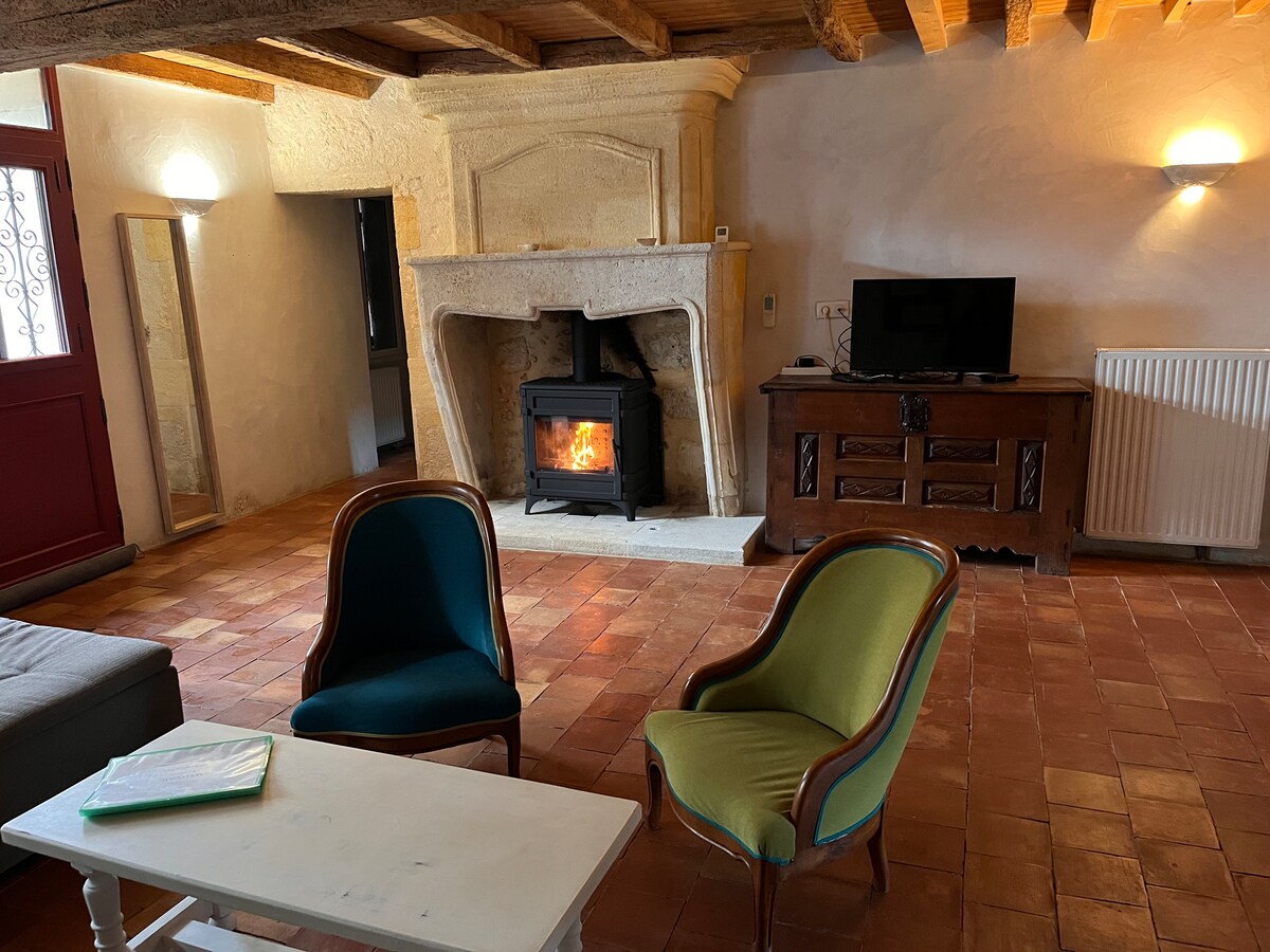Casa petita independent per a 4 persones. Es troba al cor de les vinyes més grans de St Emilion, a 5 minuts a peu del centre del poble. A l'exterior, gaudiràs d'una terrassa i d'un petit jardí privat amb unes vistes increïbles dels turons verds: pots dinar i relaxar-te després de les visites.