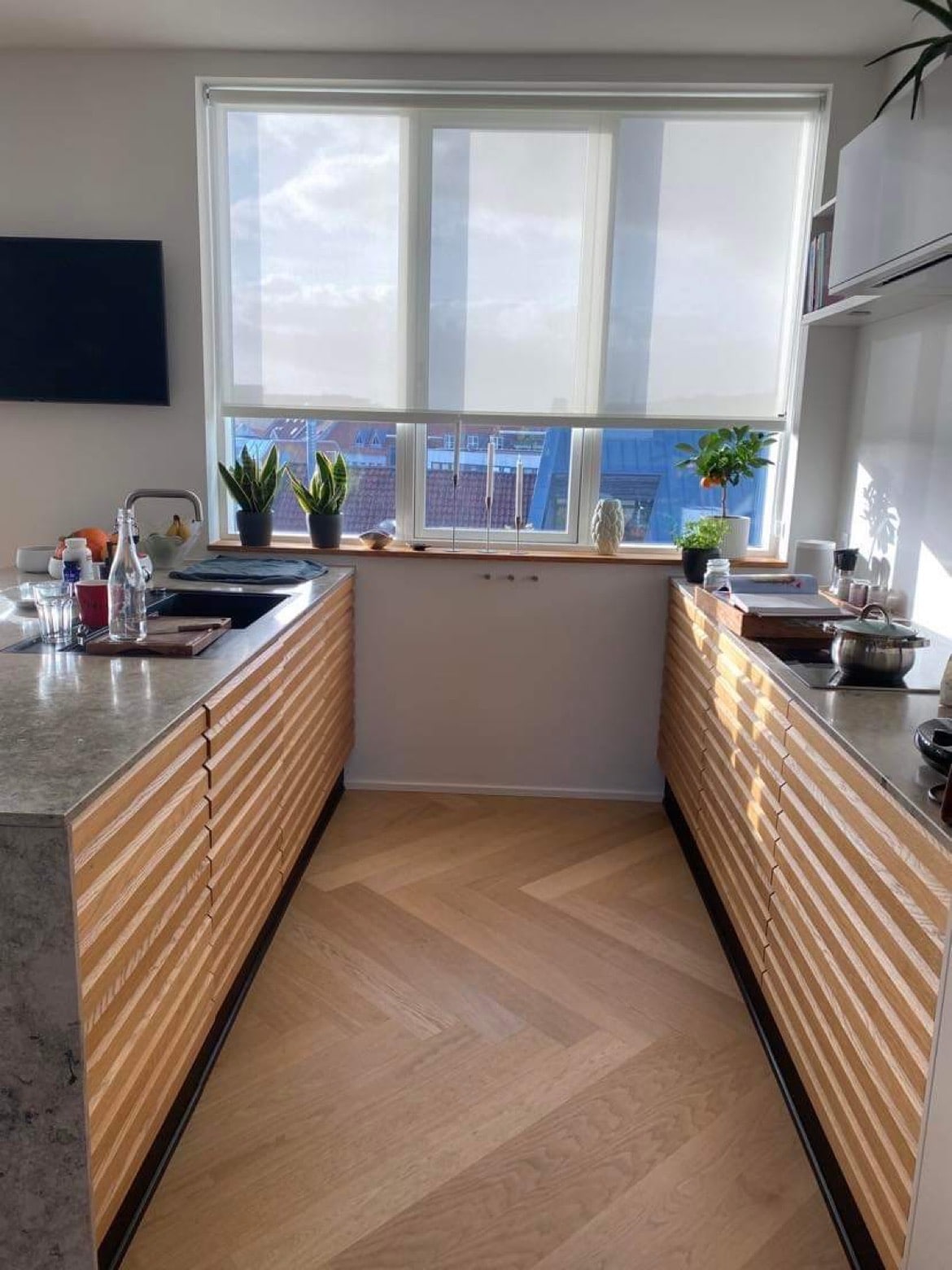 Gran apartament lluminós de 2 plantes, amb una terrassa de 70m2 i spa a l'aire lliure. L'apartament està situat al centre de Vejle i té 3 dormitoris i una gran cuina amb molt d'espai a la taula de menjador. La cuina conté tot el que necessites i hi ha una graella de gas a la terrassa. Hi ha 2 banys: un amb banyera i l'altre amb rentadora i assecadora. A la part superior hi ha la sala d'estar amb una vista fantàstica i una sortida a una gran terrassa amb vista panoràmica de Vejle. Hi ha aparcament gratuït al soterrani i ascensor a l'edifici.
