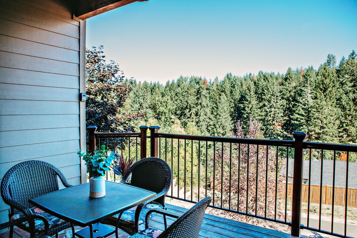 Treat yourself to 2150 sq feet of space with room to spread out comfortably and enjoy the views from the oversized windows. You will appreciate the lovely sunsets, panorama of trees, wildlife and twinkling city lights. Sit on the covered deck while you dine. Located in a peaceful neighborhood. The space is all on one level of a larger home with its own entry but requires two flights of stairs to get to the entry. NON-smoking /vaping home, smoking is allowed on the covered deck. Read our reviews!