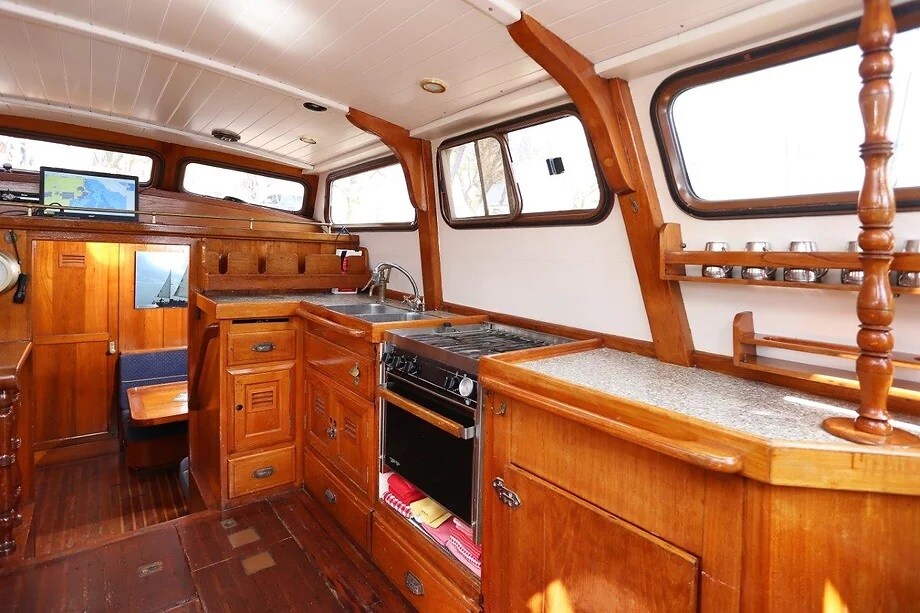La coberta-house i la cabana amb rodes que hi ha a la part posterior d'una antiga furgoneta de càrrega de vela del 1888 es transforma en un pis petit. La resta de l'embarcació és una botiga amb equipament de vela / marí i una estació de búnquer. L'entrada es deu a l'edat del vaixell, una petita escala empinada, tingues-ho en compte. Els voltants són un port animat amb vela i creuers. Hi ha aparcament disponible per 5 €, una nit molt a prop. Així que gaudeix del so i els moviments de l'aigua!
