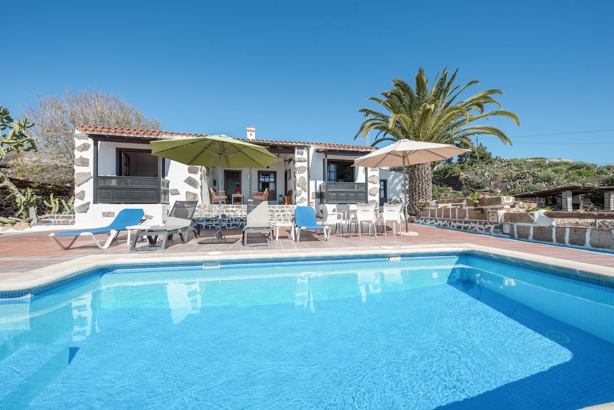 @sleephousetenerife Beautiful Canarian-style house with two rooms recently renovated with a large terrace and a swimming pool with solarium and chilling area. The house is located in a quiet area with a rural atmosphere but with the advantage of being only 15 minutes away from the beach. The house is on the top of a hill and has a wonderful and clean panoramic view towards the sea. The sunsets are magnificent with La Gomera island on background.