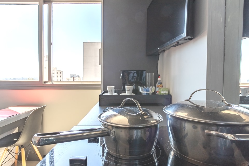 Estudi de luxe a Oscar Freire Street Modern, sofisticat i complet, al carrer més famós de São Paulo per les botigues de luxe. Estudi a la planta 24, orientat, amb una vista magnífica de l'Av Paulista. Ben equipat, amb televisor de 55 polzades, Internet wifi Vivo Fibra 200, televisor per cable, aire condicionat tranquil, cafetera, cuina i mininevera, cortina blackout automàtica, vaporitzador portàtil per a la roba, estris de cuina, assecador, llençols i tovalloles suaus, sabó i xampú/condicionador.
