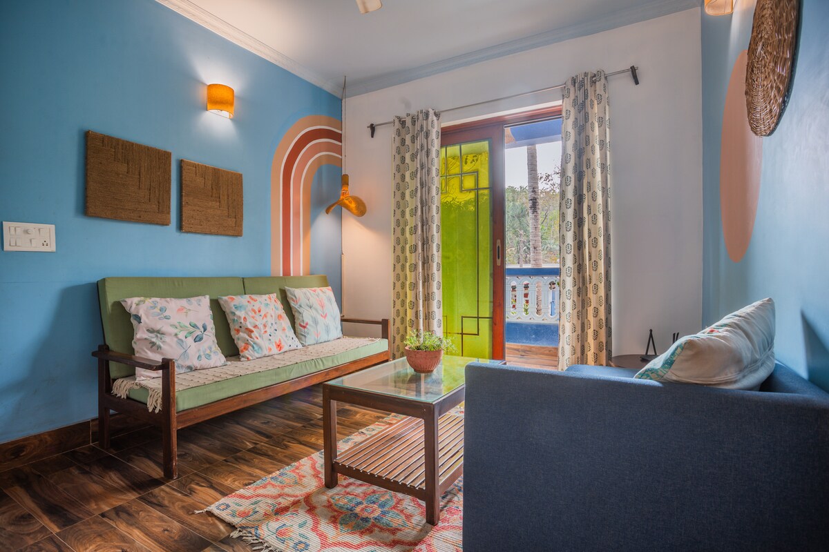 Ambient vintage a Goa|Balcó • A poca distància a peu de la platja de Vagator