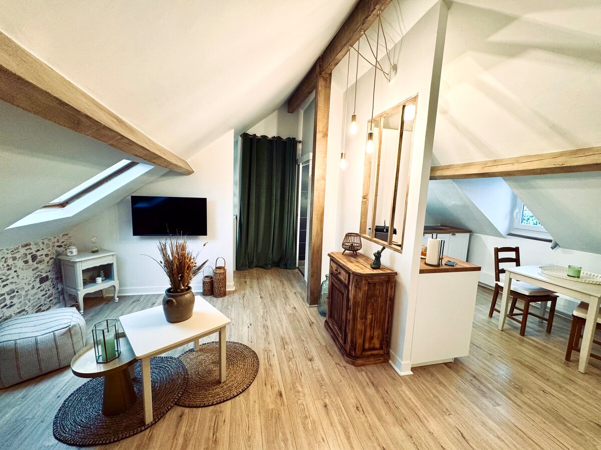 With a surface area of 42m², this charming duplex is composed of an equipped kitchen, living room, dining room on the ground floor and a bedroom with a 160cm bed, an adjoining bathroom upstairs . It can accommodate two adults and a baby (loan of an umbrella bed and baby chair on request). Bed linen (bed made on arrival), towels, office linen are provided.