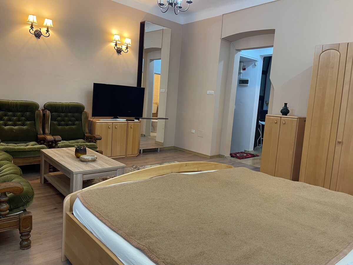 Allotja't en un tros d'història! Aquest espaiós apartament totalment reformat està situat a l'hotel més antic de Timisoara, construït el 1752. Els emperadors Josep II i Francesc I d'Àustria, així com l'Alexandru Ioan Cuza, el primer governant dels regnes romanesos, es van allotjar en aquest mateix edifici. Ara és un espai modern i totalment equipat per a 2 o 4 hostes, que combina l'encant històric amb la comoditat contemporània. Situat al cor del casc antic, estaràs envoltat de cafeteries, restaurants i llocs emblemàtics.