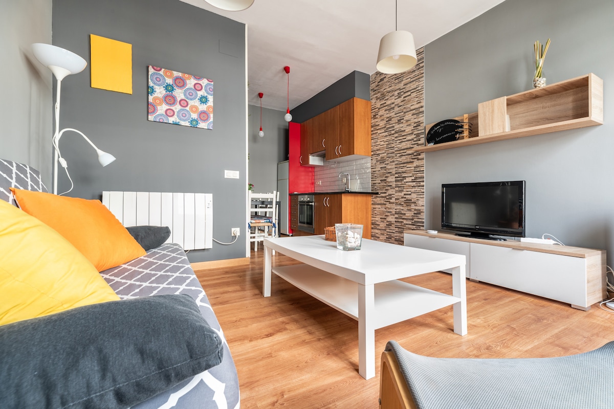 Pis acollidor i modern en un edifici nou a pocs passos de la Plaça Espanya 50 metres amb cuina, sala d'estar i habitació independent i exterior. També disposa d'un pati gran. Completament moblat i equipat amb llençols, tovalloles, vaixella, televisor, rentadora, rentaplats i internet (wifi). A 200 metres de Corte Inglés i a 600 de l'estació de tren i autobús. Pots caminar (10 minuts) fins al casc antic i l'estació marítima. Aparcament privat a 50 metres i zona blanca (gratuïta) a 100 metres.