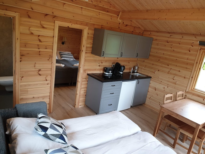 Acollidora i minimalista minivila de 36 metres quadrats per a un màxim de 2 persones (incloent-hi nens de 0 a 13 anys), a només 2 km de Fjaðrárgljúfur. La mini vil·la té una vista impressionant de les muntanyes i del camp de lava molsós. Disposa d'un dormitori, un bany modern amb dutxa i una cuina totalment equipada amb forn/microones, rentaplats i nevera. Gaudeix del cafè del matí amb la cafetera Nespresso Citiz mentre t'endinses en el paisatge islandès.