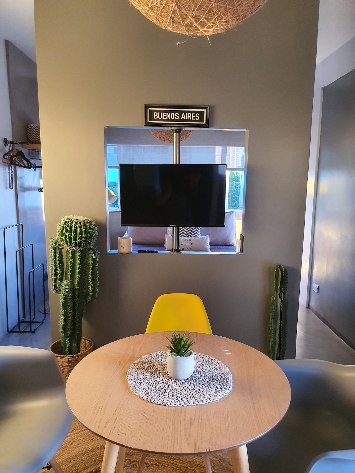 Ubicado en la mejor zona de Palermo Hollywood , Acceso a todos los medios de transporte para moverse por la cuidad, también a pie tenes muchas opciones de oferta gastronómica y turística. Totalmente equipado: Cerradura Digital, WIFI, Cama King 2 plazas , Tv - Cable .A/A frío calor , Cocina abierta de excelente calidad, horno eléctrico, microondas, heladera con freezer, pava eléctrica, cafetera, tostadora, lavarropas, tender, plancha, tabla de planchar y secador de Pelo.