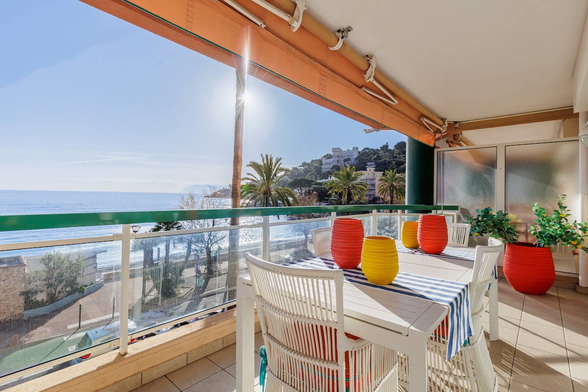 « SEAVIEWS BY JENNI MENTON »présente: Superbe 2 Pièces NEUF en Front de Mer, sur la Promenade du Soleil. 50 m2 de design,large terrasse de 18m2, vue mer comme sur un bateau de tout l'appartement. Conçu pour le confort de 4 personnes. Décoration très recherchée,matériaux et équipements haut de gamme. GARAGE FERMÉ* ASCENSEUR CLIM SMART TV INTERNET ILLIMITÉ HAUT DÉBIT ENCEINTE BLUETOOTH BOSE A quelques minutes à pied de tous les commerces et activités. Bus en bas de la résidence, gare à pied.
