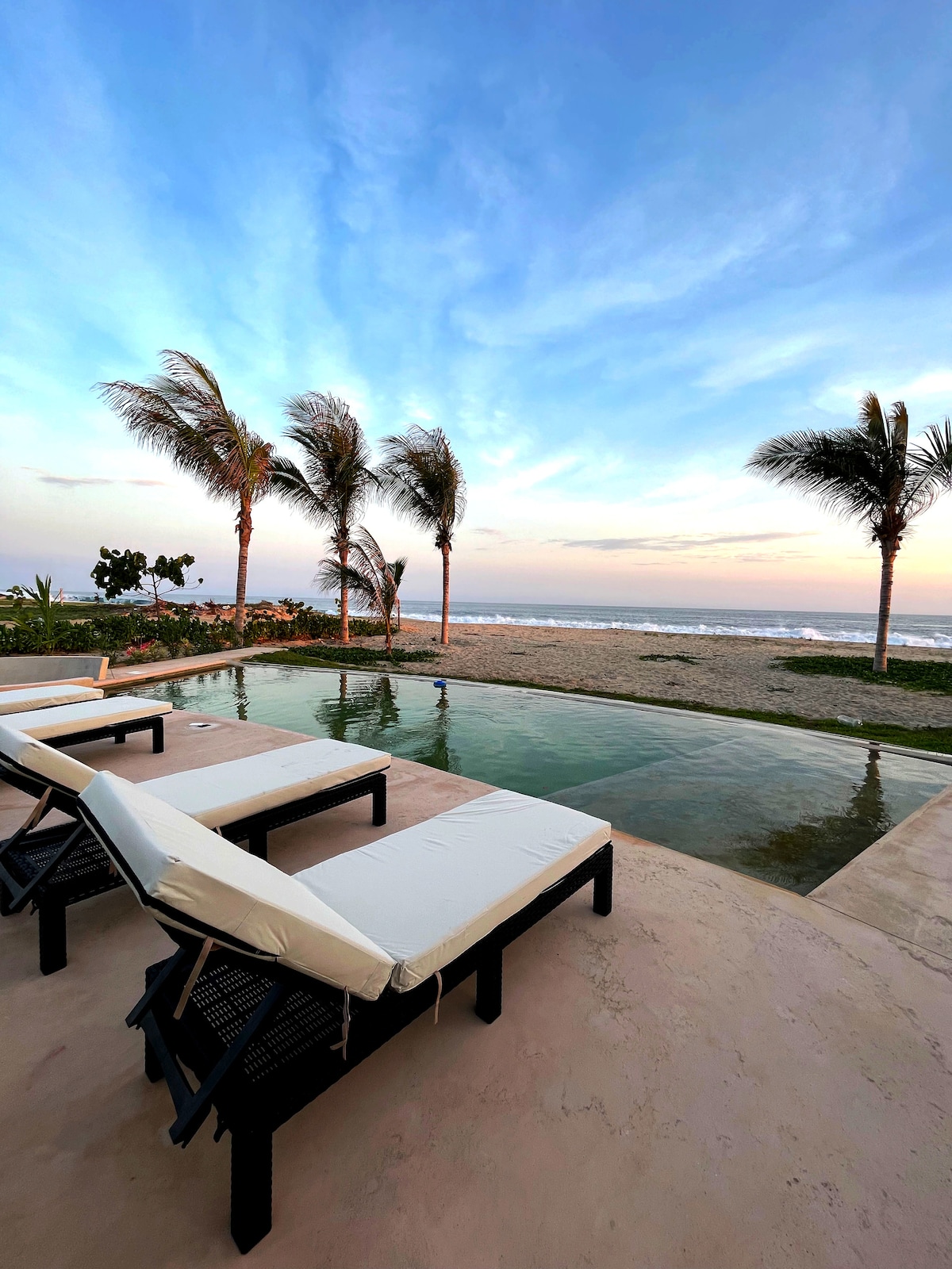 Renovat amb 2 dormitoris addicionals el 2024! Escapa't al teu paradís privat, a uns passos de la platja de Palmarito, a Puerto Escondido, Mèxic. Amb tres dormitoris, cadascun amb un llit «queen size», aquest refugi ofereix unes vistes impressionants de l'oceà. Gaudeix de les comoditats de l'aire condicionat, les cuines petites interiors i exteriors i d'un pati espaiós amb una torre de platja i piscina privada. Desconnecta i submergeix-te en la bellesa de l'oceà Pacífic. Ja sigui fent surf o pescant a les famoses aigües de Puerto Escondido.