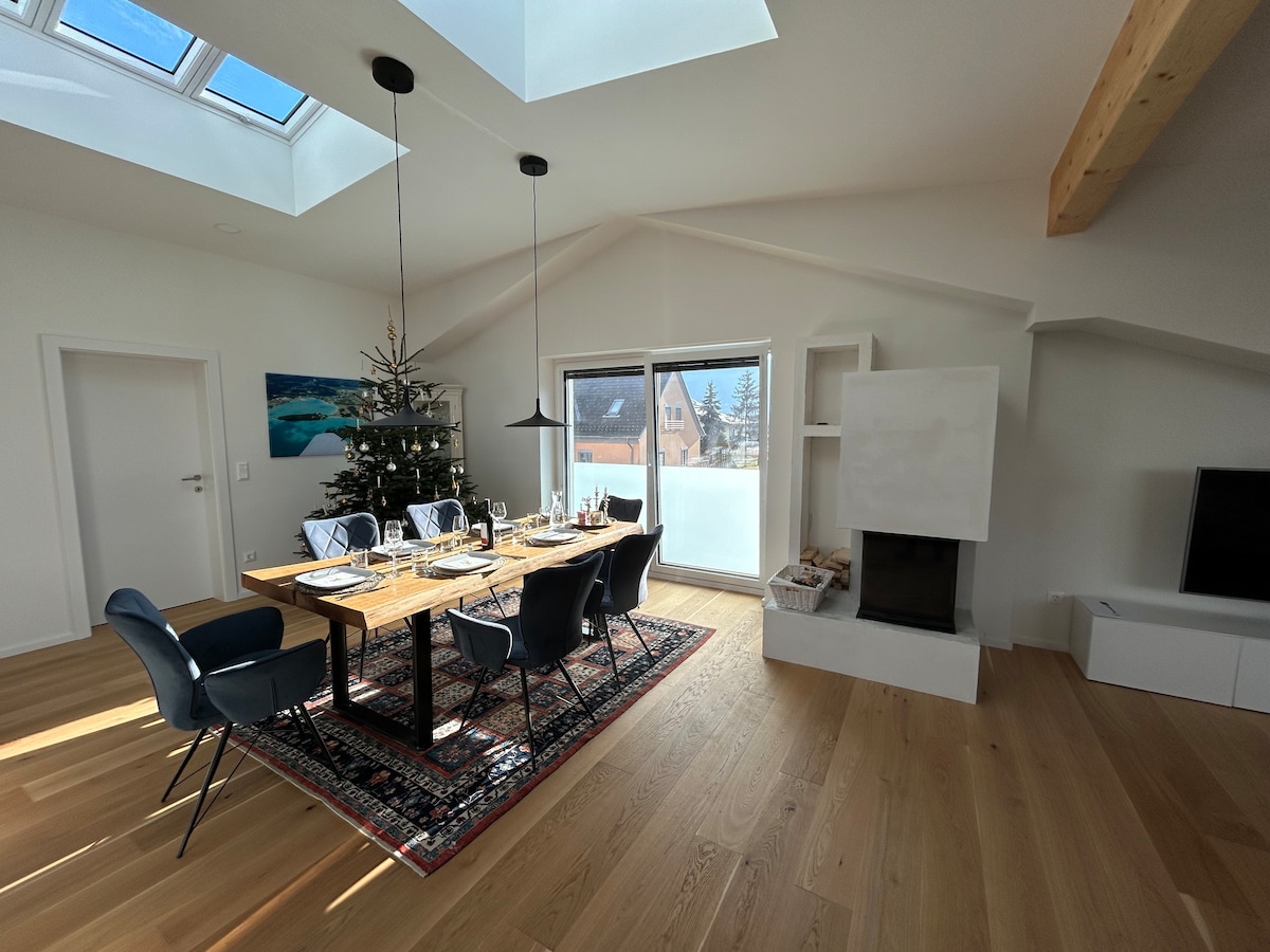 Our holiday home is 85m2, bright, spacious, comfortable and high quality furnished large living, kitchen and dining area on the ground floor fully equipped kitchen 2 double bedrooms each with their own shower room on the upper floor Each bedroom has its own bathroom TV-Satellite-Netflix-Prime etc. in every room Washing machine and tumble dryer Internet access via WLAN Own terrace with barbecue facilities and deck chairs Free parking Sleeps 6 people