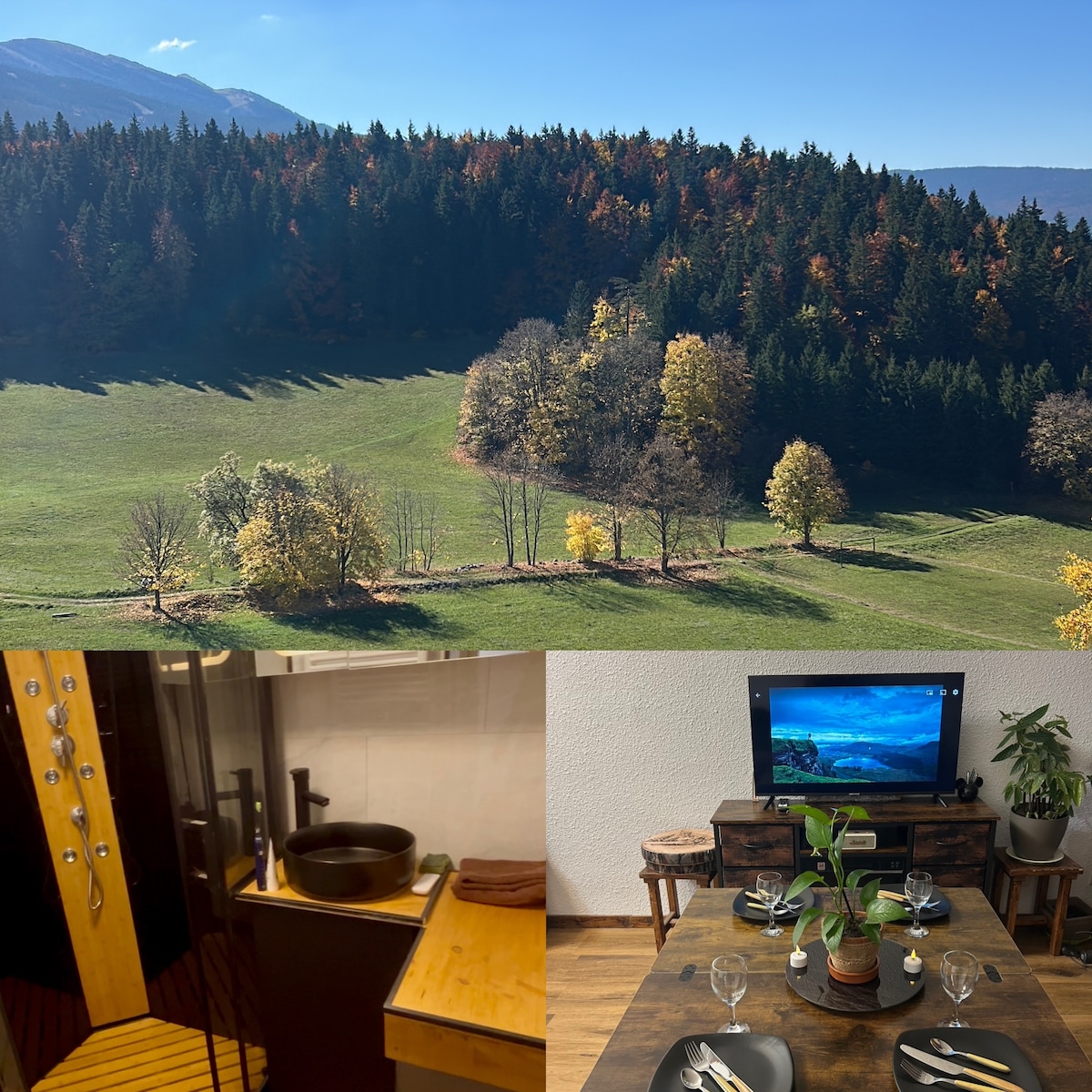 Relaxació garantida en aquest encantador pis de 45 m² a la planta baixa per a 4-6 persones. A 5 minuts de botigues i restaurants. A 2 minuts de les llançadores gratuïtes que van a les pistes d'esquí. Una vista preciosa de les muntanyes i un munt d'activitats. Escalada d'arbres, senderisme (d'aventura i familiar), paintball, tir amb arc, waterpolo, ciclisme de muntanya de baixada, trail running, centre aquàtic, pista de patinatge, casino, biblioteca, gimnàs, bitlles i cinema. Mercats els dimecres i els diumenges