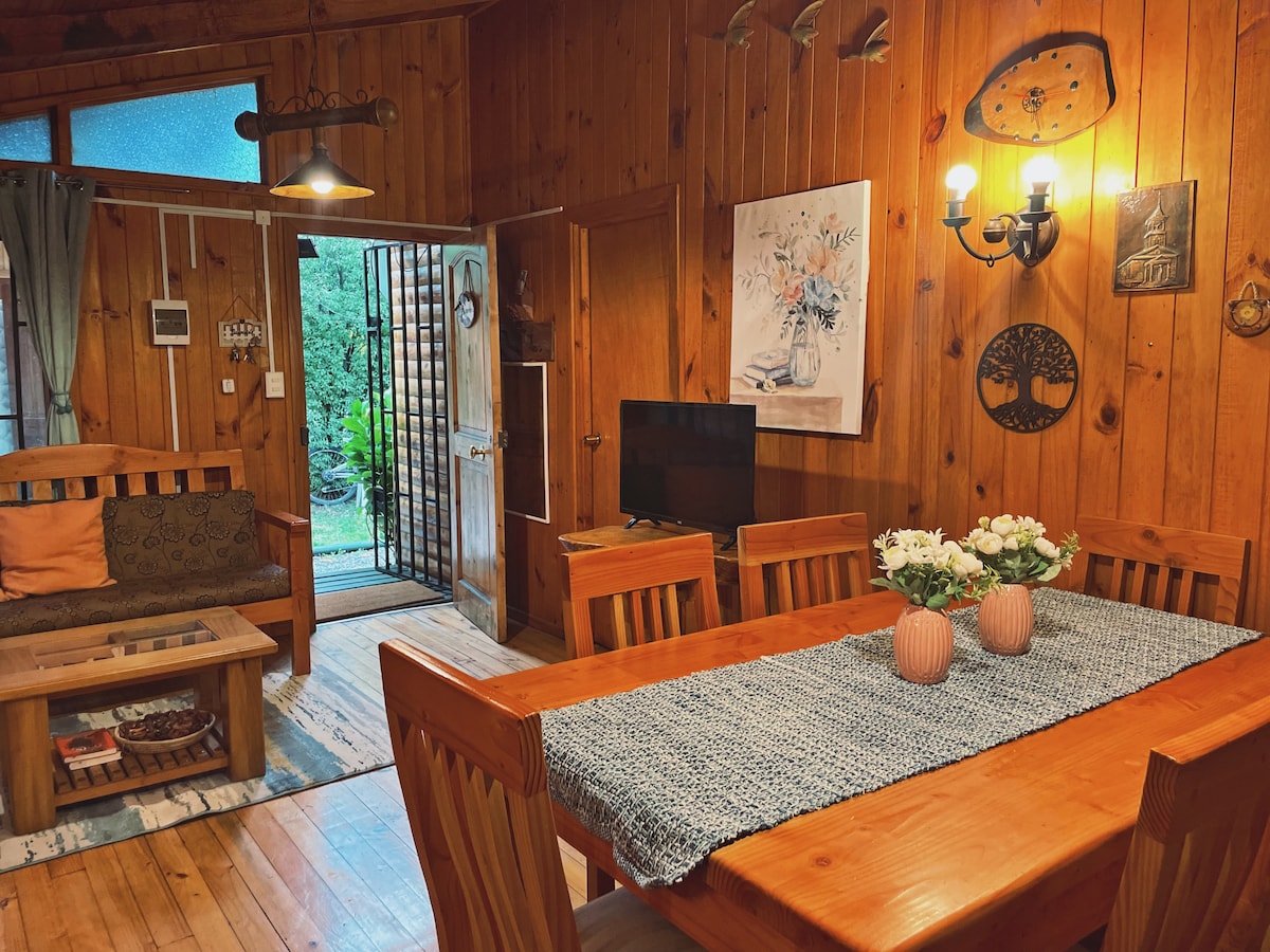 La nostra acollidora minicasa de construcció recent té unes vistes increïbles de la vall de Pucon i es troba a només 7 minuts en cotxe o a quatre milles del centre de la ciutat. L'última milla de quater fins a la casa és un camí de grava amb dos turons empinats i només és per a cotxes 4x4 o awd. Aquesta minicasa es troba a prop de la famosa cascada "Salto del Claro" i no es troba a pocs minuts del "Rio Turbio", que és ideal per fer senderisme o a l'estiu prendre una copa a les aigües volcàniques de la font.