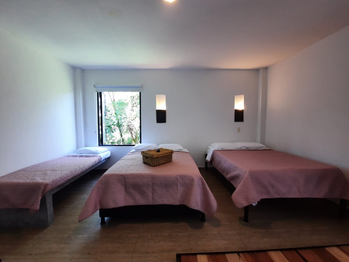 Gaudeix d'una estada còmoda i tranquil·la en aquesta espaiosa habitació familiar, perfecta per a grups o famílies de fins a 4 persones. Disposa de 2 llits dobles, bany privat i ventilador. 🌿 L'ambient és modern, net i acollidor, dissenyat per fer-te sentir com a casa. 🚿 Inclou tovalloles, llençols nets i articles de tocador bàsics. Connexió wifi📶 d'alta velocitat. 🚗 Aparcament gratuït (consulta la disponibilitat). 🧺 Servei de bugaderia disponible amb un cost addicional.