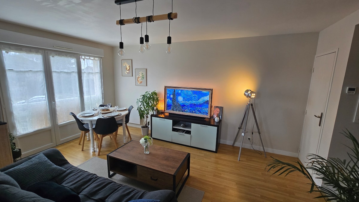 Descobreix el nostre allotjament amb encant a la vora de l'Indre! Aparcament gratuït. A 7 minuts a peu de Place Monestier amb bars i restaurants. Recentment renovat i ben decorat, ofereix un gran llit QUEEN SIZE, 2 televisors amb televisor taronja i NETFLIX, una CAFETERA NESPRESSO (s'ofereixen càpsules), rentadora (es proporciona detergent per a la roba) i rentaplats (s'ofereixen capses). Reserva ara una experiència única a Châteauroux. Wifi de fibra. S'admeten animals de companyia.