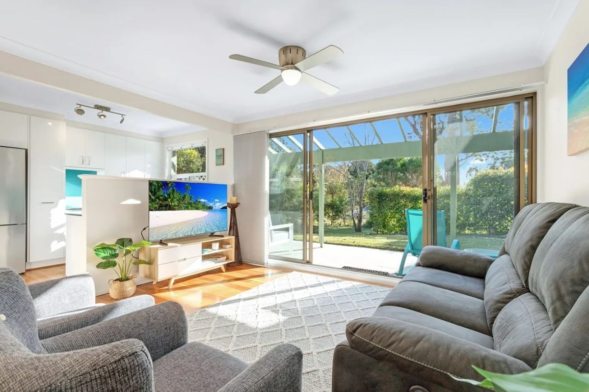 Arrossegada al tranquil racó del poble de Hyams Beach, la nostra casa és perfecta per a unes vacances en família o en parella. Acabo d'acabar la renovació completa amb cuina nova, aire condicionat/calefacció, 2 banys i terrasses cobertes. Gaudeix d'unes vistes impressionants de l'oceà i dels arbustos, a uns passos de la platja i dels camins del parc nacional. Ideal per relaxar-se i aventurar-se. Gaudeix de comoditats com ara NBN wifi, Netflix, barbacoa i brisa marina. Gaudeix de la barreja perfecta de serenitat a la vora del mar i la bellesa natural del nostre refugi ben equipat.