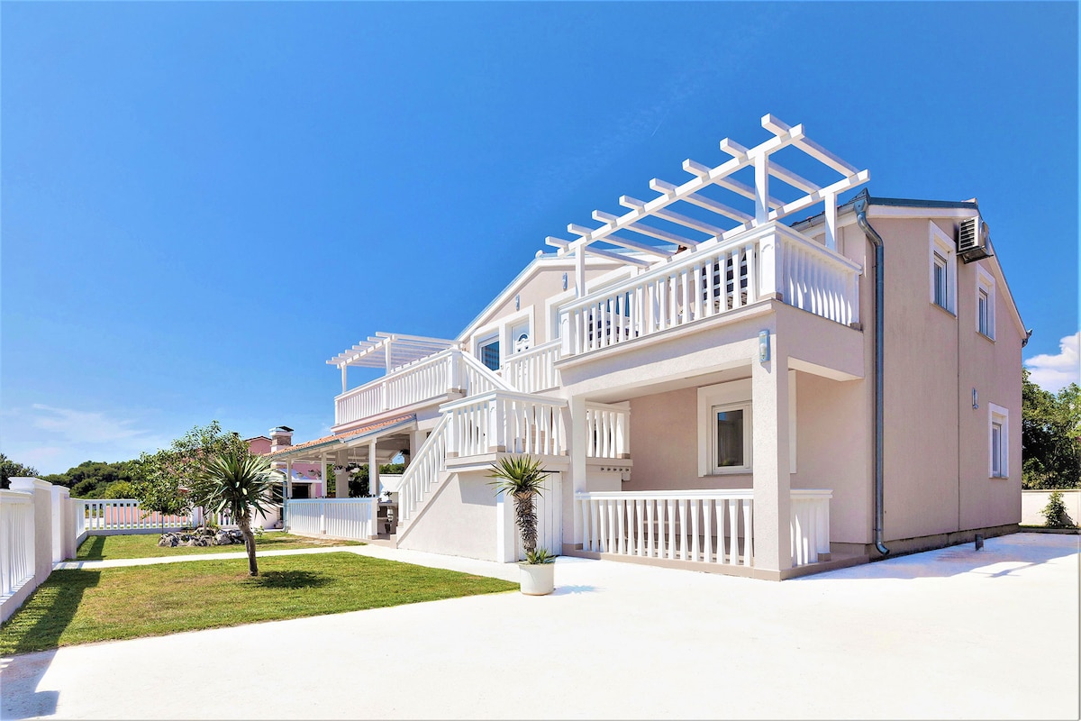 L'espai està climatitzat (dos aparells d'aire condicionat, un al menjador i l'altre al dormitori principal) i l'aire condicionat no es cobra per separat. Els hostes tenen a la seva disposició Wi-Fi gratuït. Els hostes també tenen a la seva disposició 2 - 4 places d'aparcament dins del pati. L'edifici es va acabar el 2017 i tot és completament nou (bany, cuina, habitacions ...). L'àmplia habitació principal s'estén per tota la planta superior de l'edifici. Els hostes tenen a la seva disposició una barbacoa exterior i un balcó dins de l'apartament.