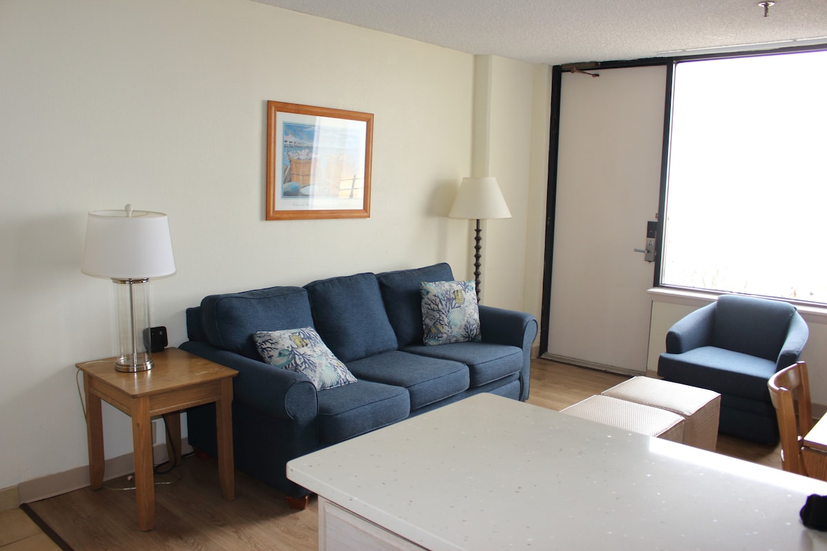 Preciós pis d'un dormitori al cor de Virginia Beach. Vistes increïbles des del balcó privat. Llit còmode i sofà llit. Accés a la piscina, bronzejat, espai de treball, gimnàs, sala d'arcades i aparcament gratuït. La teva família estarà a prop de tot quan t'allotgis en aquest allotjament cèntric. Només està disponible la setmana 33 de multipropietat. L'arribada i la sortida són de divendres a divendres.